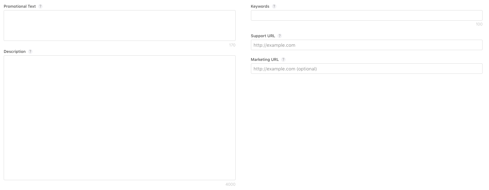 – Marketing URL (optional): a link where users can find more information about the app.