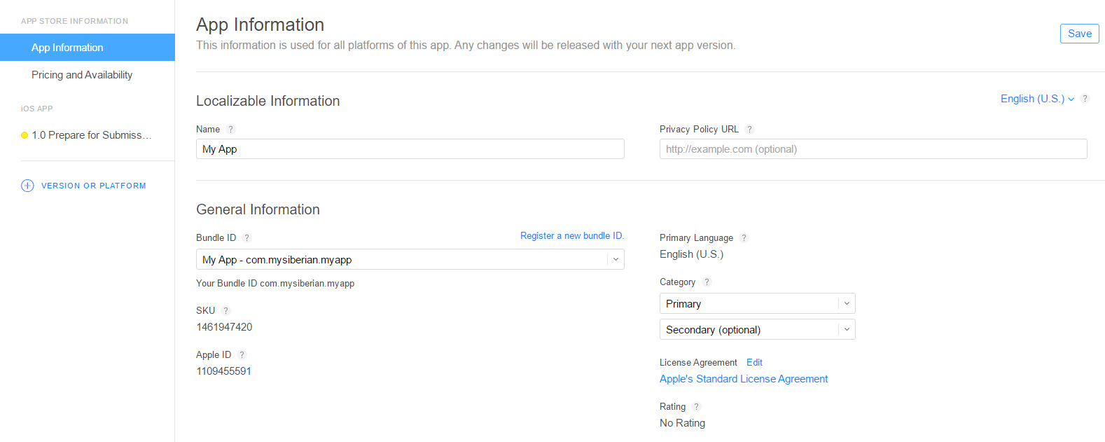 4. In App Information, select the category of your app, you can also select a secondary category (optional).