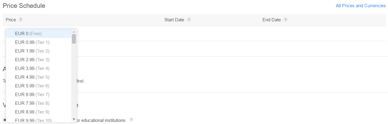 7. In Price Schedule, select the Price of your app.