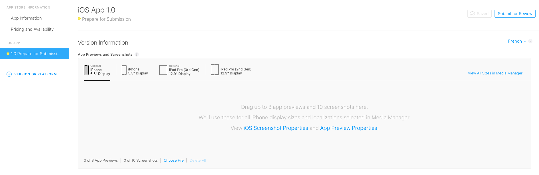 11. In Version Information, first add the screenshots of your app.