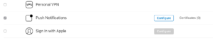 – Go at the bottom and for Push Notifications, click on “Configure”: