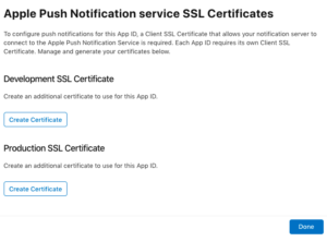 Thanks to this certificate you will be able to add push notifications, in-app purchase, and other services to your app. In our case, only the push notification service is interesting.