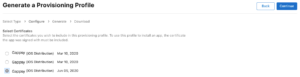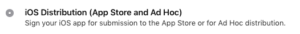 – Choose “iOS Distribution (App Store and Ad Hoc)” and click on “Continue”: