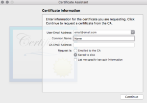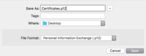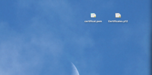 – On your desktop you have now two certificates: a Certificates.p12 and a certificat.pem.
