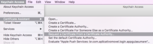 Before keep looking at the .pem certificate creation, let’s make a brief clarification about case 2. In case 2 there must be absolutely no certificate for ios, if you have already uploaded one please remove it from both your files and your database. To remove the .pem certificate you have already uploaded, go first in your database, in the table “push_certificate”, look for the line in this table with the “app ID” of the app for which you want to remove the .pem certificate. You will get the name of the .pem certificate, it will be someting like “cert_55c311wqce5e2.pem”. Copy this file name. Delete this line in the database (be sure to not remove the table! just the line which contains this .pem certificate related to the app). Then go in your files with your file manager or with Filezilla, go in var/apps/iphone and check for the .pem certificate you have just copied. Delete the file. You are done.