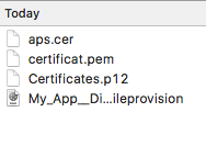 – Move these files to the folder of your app on your Mac (with the provisionning profile and the aps.cer)