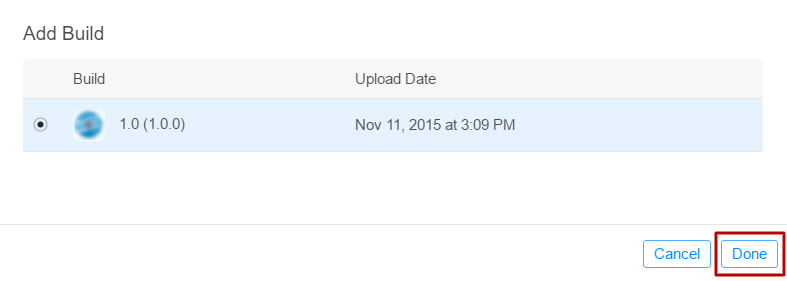 16. Select your build and click Done.