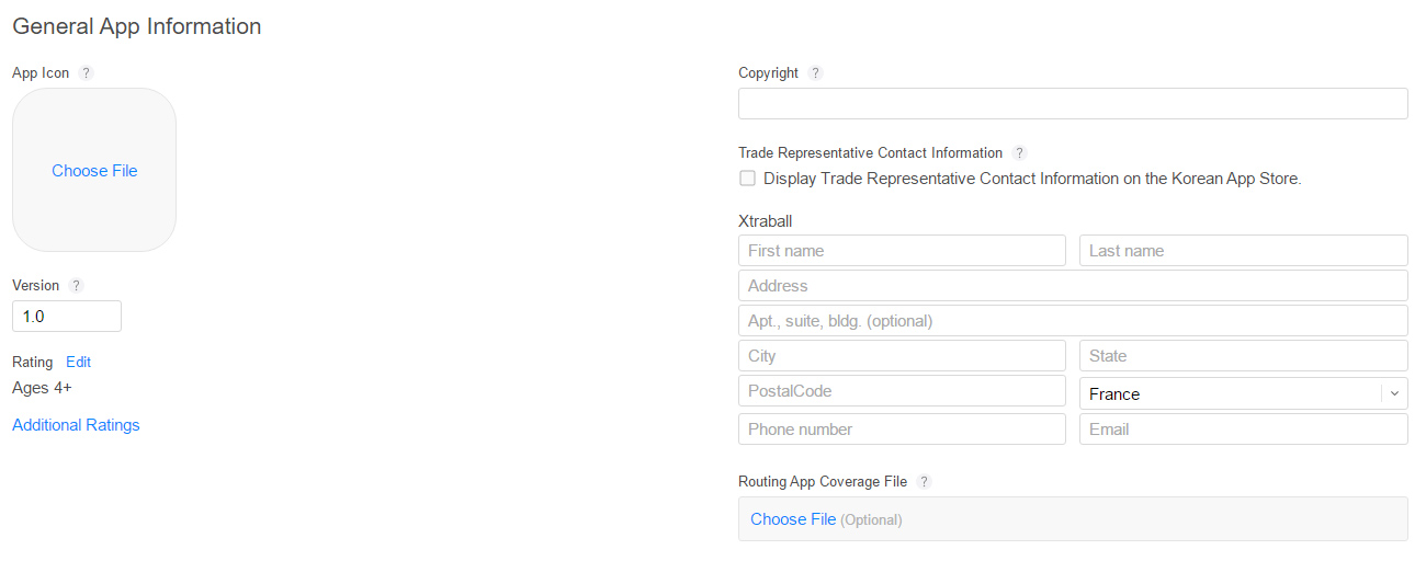 – (Optional) The Trade Representative Contact Information. You can provide additional information that will be displayed with your app on the Korean App Store. This information will only appear on the Korean App Store.