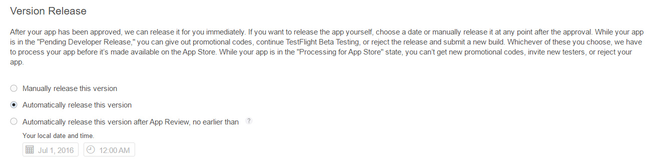 18. In Version Release, select Automatically release this version.