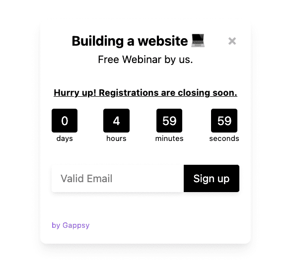 Create urgency/FOMO with a countdown timer and input for a lead generation